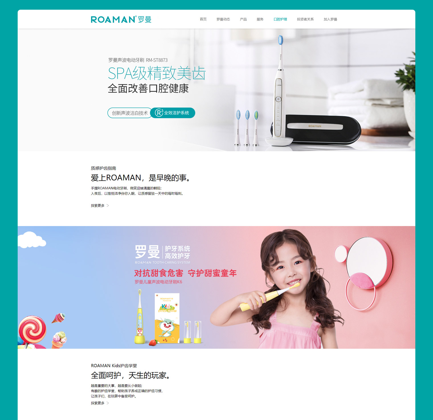 羅曼電動(dòng)牙刷股份網(wǎng)站建設(shè)以突出品牌為主,同時(shí)要確保關(guān)鍵詞排名利于搜索引擎收錄,網(wǎng)站創(chuàng)意設(shè)計(jì)上采用了扁平化的設(shè)計(jì)風(fēng)格,結(jié)合產(chǎn)品色調(diào)用色,使整個(gè)網(wǎng)站清新簡潔,頁面內(nèi)容結(jié)構(gòu)從關(guān)鍵詞排名收錄進(jìn)行布局,6個(gè)月內(nèi)網(wǎng)站關(guān)鍵詞排名80個(gè),PR值4;整個(gè)網(wǎng)站無論從設(shè)計(jì)上還是從關(guān)鍵詞排名上都達(dá)到了理想效果,也與客戶達(dá)成長期合作。